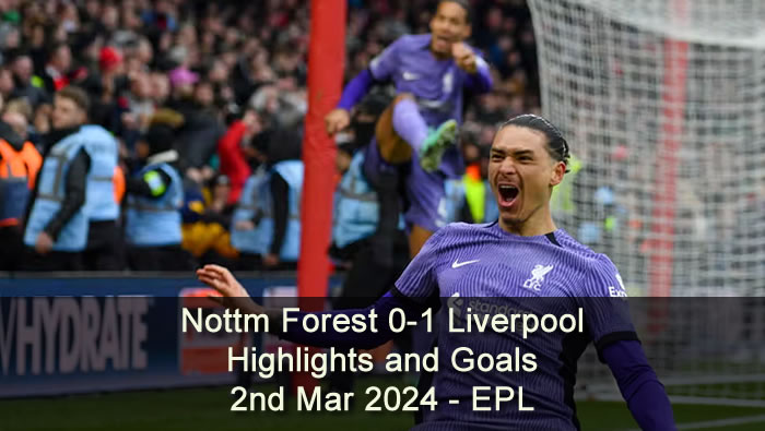 Nottingham Forest 0-1 Liverpool - Highlights and Goals - 2nd Mar 2024 - EPL (801 views)Watch Nottingham Forest 0-1 Liverpool Highlights and Goals 2nd Mar 2024 - EPL. Live football streaming ended, and the&...[read more]