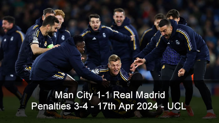 Man City 1-1 Real Madrid - Penalties 3-4 - 17th Apr 2024 - UCL (1.4K views)Watch Man City 1-1 Real Madrid - Penalties 3-4 Highlights and Goals 17th Apr 2024 - UCL. Live football ...[read more]