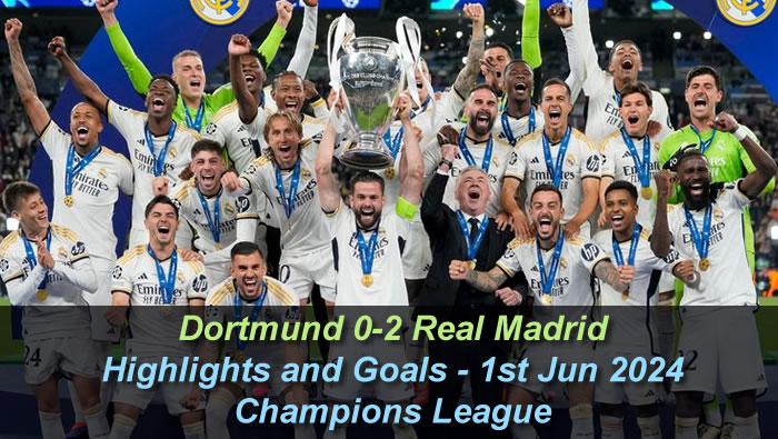 Dortmund 0-2 Real Madrid - Highlights and Goals - 1st Jun 2024 - Champions League (788 views)Watch Dortmund 0-2 Real Madrid Highlights and Goals 1st Jun 2024 - Champions League. Live football streaming ended, ...[read more]