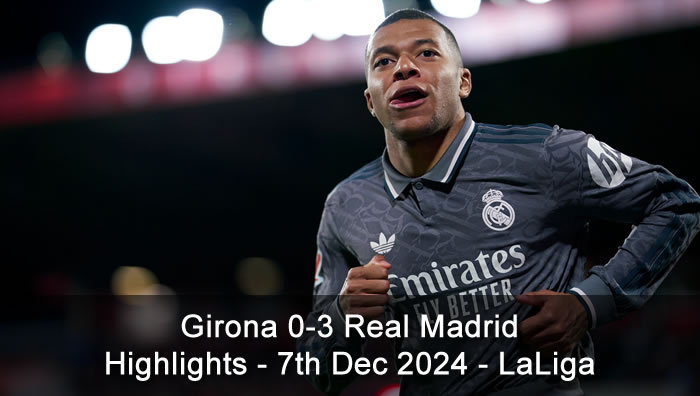 Girona 0-3 Real Madrid - Highlights - 7th Dec 2024 - LaLiga (826 views)Watch Girona 0-3 Real Madrid highlights and Goals - 7th Dec 2024 - LaLiga, You can also watch ...[read more]