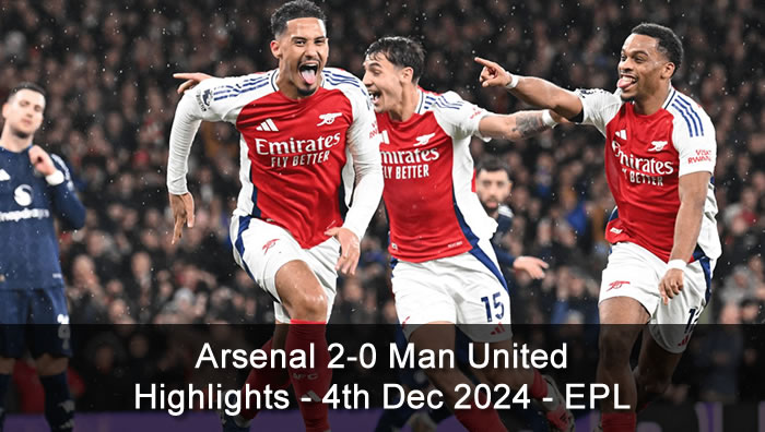 Arsenal 2-0 Man United - Highlights - 4th Dec 2024 - Premier League (665 views)Watch Arsenal 2-0 Man United highlights and Goals - 4th Dec 2024 - Premier League, You can ...[read more]