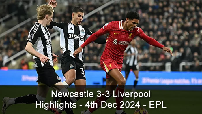Newcastle 3-3 Liverpool - Highlights - 4th Dec 2024 - Premier League (870 views)Watch Newcastle 3-3 Liverpool highlights and Goals - 4th Dec 2024 - Premier League, You can also ...[read more]