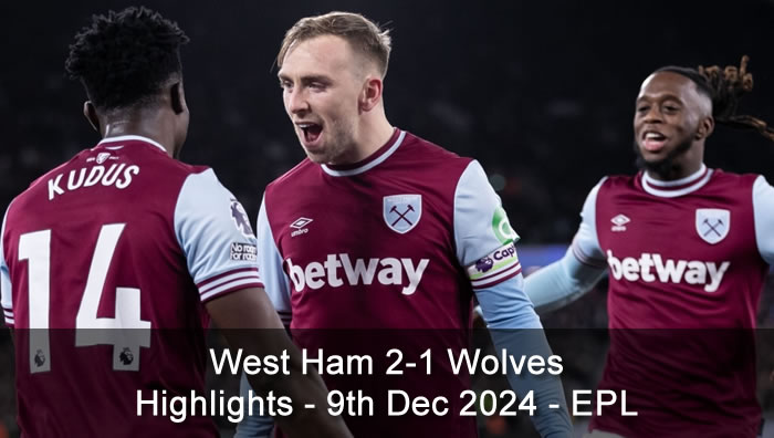 West Ham 2-1 Wolves - Highlights - 9th Dec 2024 - Premier League (916 views)Watch West Ham 2-1 Wolves highlights and Goals - 9th Dec 2024 - Premier League, You can also ...[read more]
