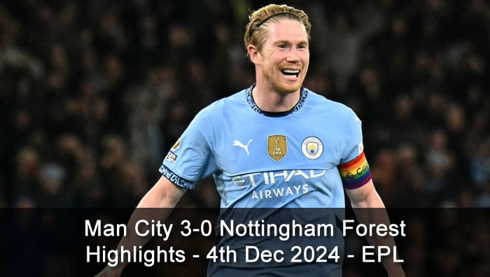 Man City 3-0 Nottingham Forest - Highlights - 4th Dec 2024 - Premier League (622 views)Watch Man City 3-0 Nottingham Forest highlights and Goals - 4th Dec 2024 - Premier League, You ...[read more]