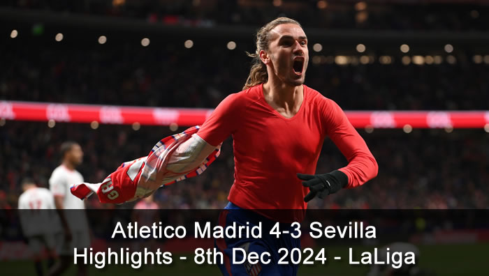 Atletico Madrid 4-3 Sevilla - Highlights - 8th Dec 2024 - LaLiga (744 views)Watch Atletico Madrid 4-3 Sevilla highlights and Goals - 8th Dec 2024 - LaLiga, You can also watch ...[read more]