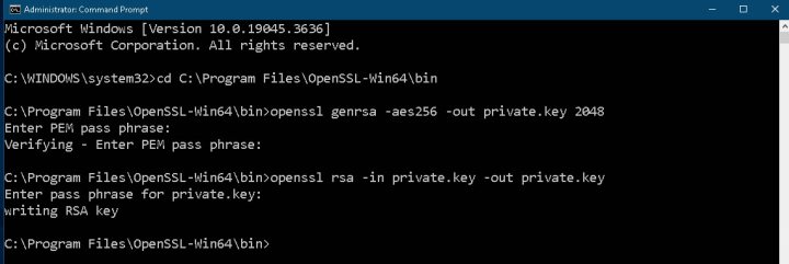 Create a private key by copying and pasting each of the lines below and clicking Enter key each time you copy and paste, when asked for pass phrase, it can be any number of characters you like, e.g., 1234: