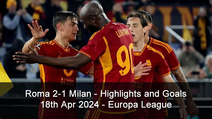 Watch Roma 2-1 Milan Highlights and Goals 18th Apr 2024 - Europa League. Live football streaming ended, and the football highlights and goals were compiled for you. Maybe you did not watch the full match or want to watch it again, and then you can watch the football video highlights & goals below.