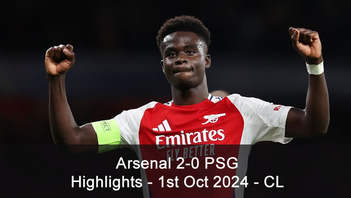 Arsenal 2-0 PSG - Highlights - 1st Oct 2024 - Champions League